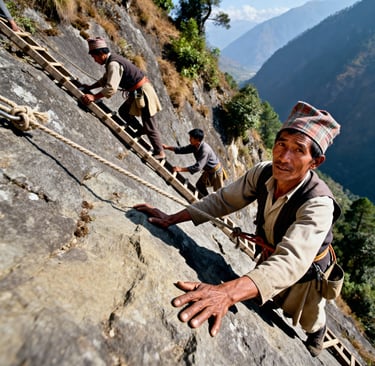 We assembled before the sun had crested the formidable peaks to the east. The hunting party was smaller than I’d imagined: Kamal, his two sons—quiet, sturdy men in their twenties named Rohan and Bir—and an older man, Dorje, whose face was a web of wrinkles that seemed to map every cliff he’d ever climbed. They moved with an economy of motion, checking coils of handmade rope, smoking the large, wicker baskets they would use to carry the honeycombs, and sharpening their tangis, the long, curved knives that are as much a tool as a weapon here.